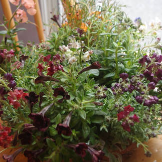 根付きの植物を花束のように束ねて植える寄せ植えの技法です。フラワーアレンジメントのような華やかな寄せ植えを作ることができます。